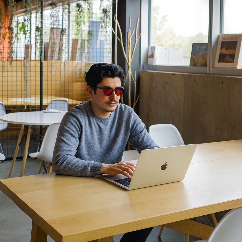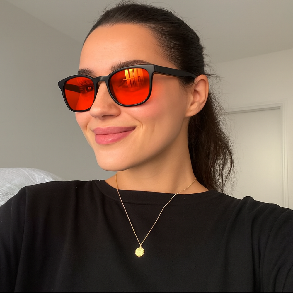 Nuestras lentes rojas, calibradas científicamente, bloquean las longitudes de onda nocivas (400–520 nm) sin alterar la luz natural.